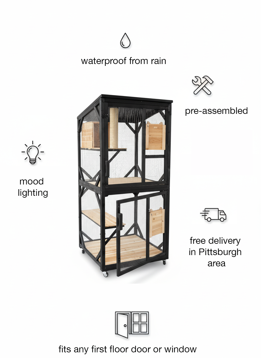 Our catios feature elegant mood lighting and thoughtful design, creating the perfect retreat for your feline friend.